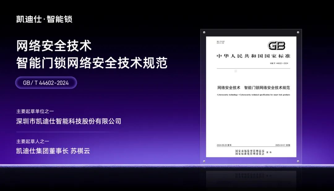 凱迪仕參與制定 “智能鎖行業(yè)最新國(guó)家標(biāo)準(zhǔn)”,為行業(yè)樹立標(biāo)桿典范!